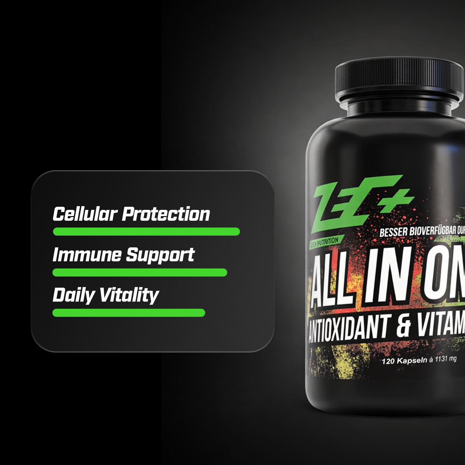 Mit nur zwei Kapseln täglich bekommst du eine breite, alltagstaugliche Versorgung, ohne mehrere Einzelprodukte kombinieren zu müssen. Ideal für Sportler, Vieltrainierer oder alle, die im Alltag mehr leisten müssen. Klare Formel, klare Dosierungen, klare Wirkung – typisch Zecplus.