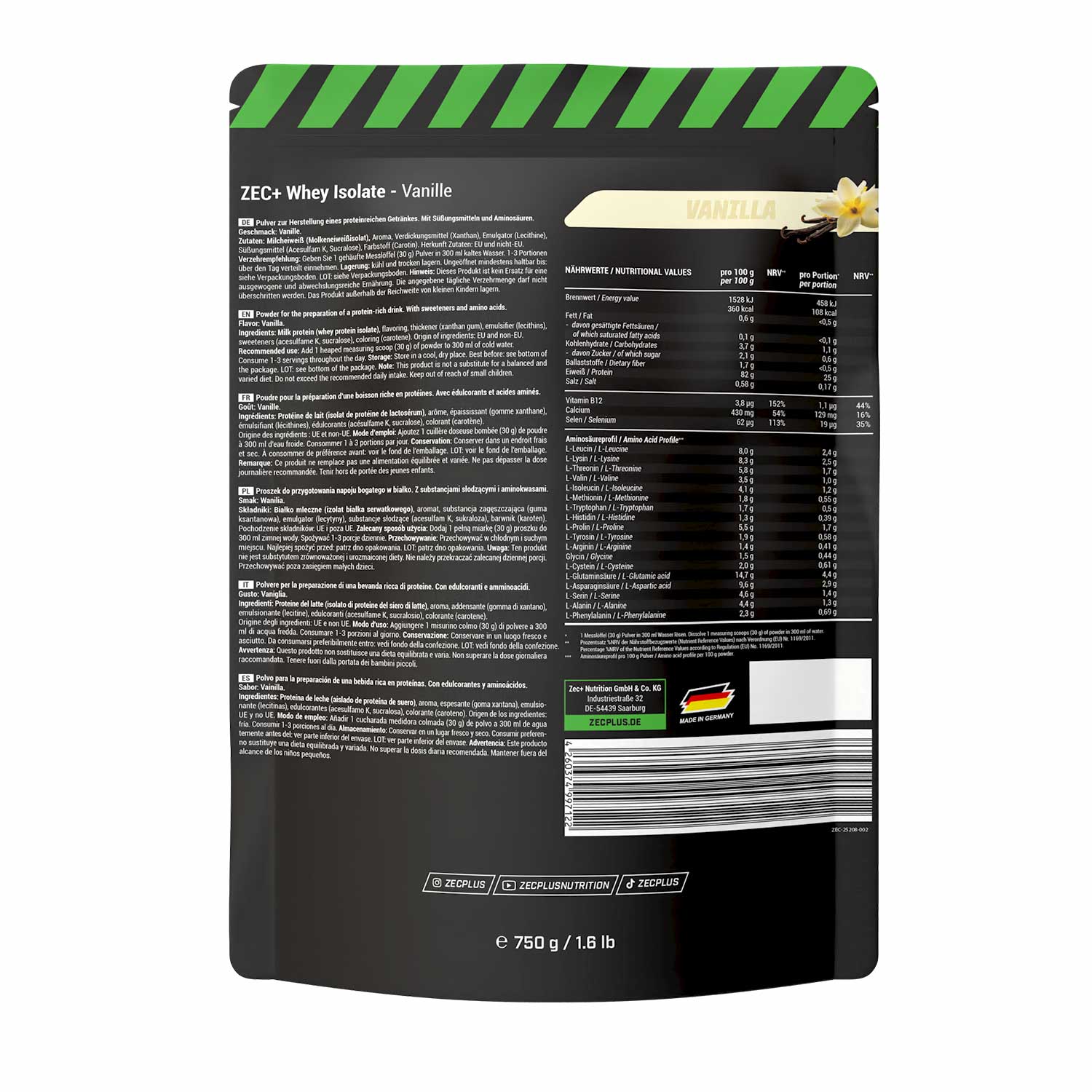 Das ZEC+ Whey Protein Isolat ist die absolute Nummer 1 unter unseren Proteinen und DIE Diät-Empfehlung unter den Eiweiß-Shakes. Dank einer geringen Kalorienanzahl können mit diesem Pulver Muskelaufbau und Diät gleichzeitig unterstützt werden. Da das Eiweiß-Pulver aus WHEY ISOLAT so gut wie keine Kohlenhydrate oder Fette enthält, ist dieser Eiweiß-Shake optimal für den Wettkampf- und Leistungssportler oder in einer Diät geeignet.